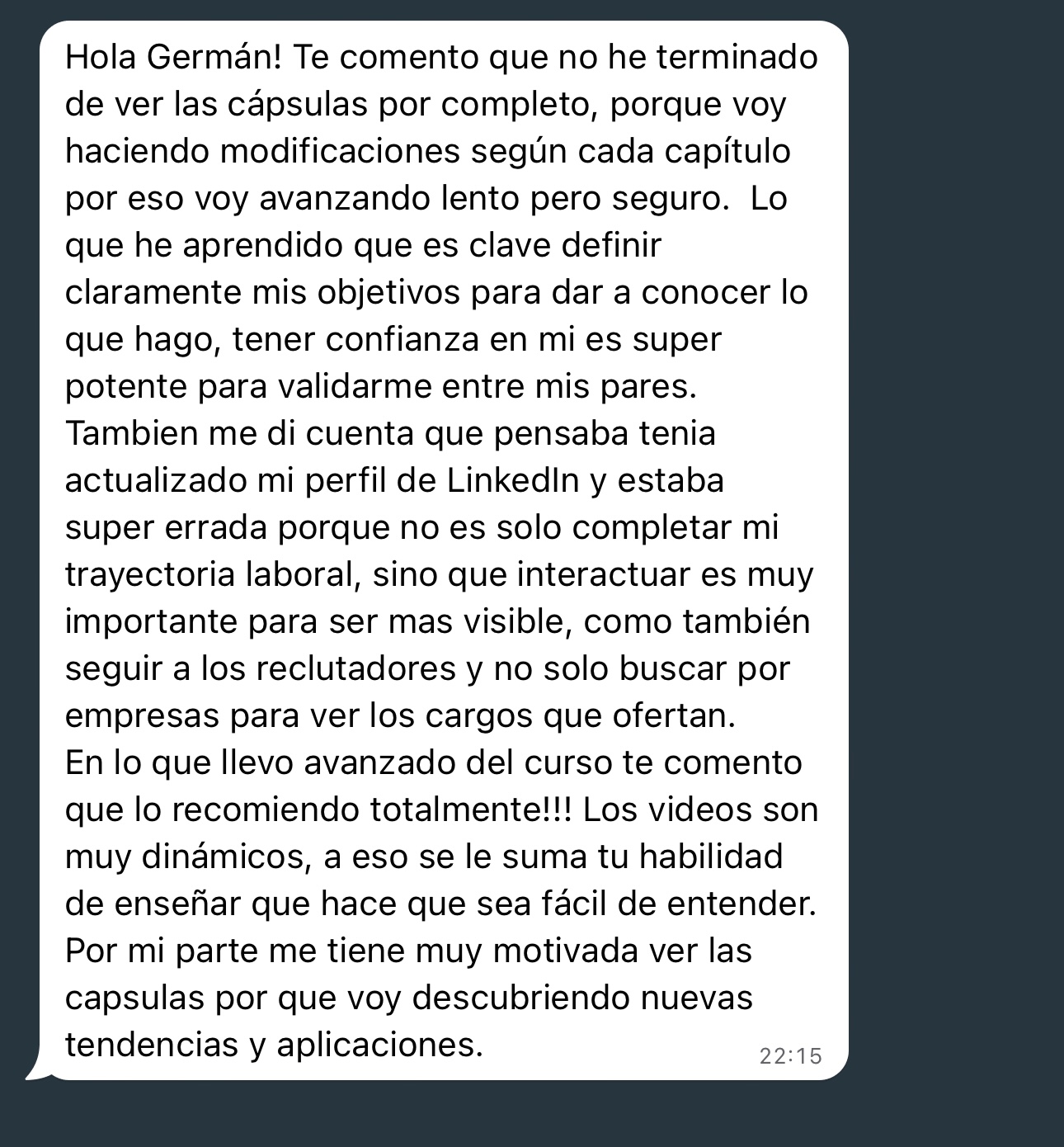 Mira lo que están diciendo los alumnos respecto del curso